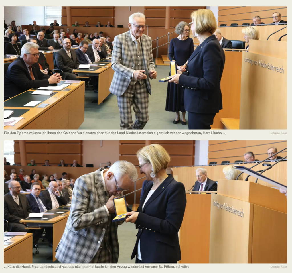 In seiner Glosse „Weißmann-Kündigung wird für den ORF zur Millionenshow“ bringt Nusser zwei Fotos von mir samt höchst amüsanter Bildlegende.