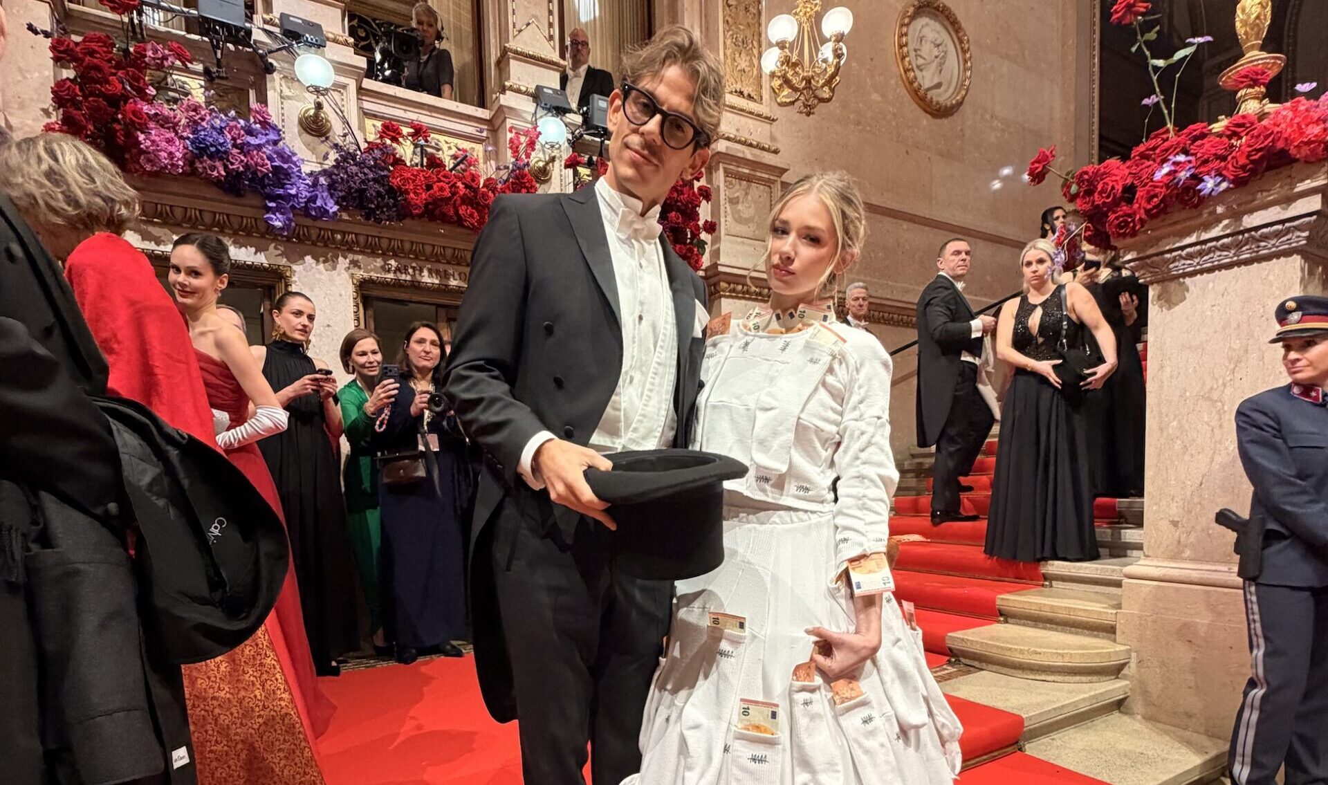 So auch beim Influencer MaxaMillion, der auf dem Opernball in Begleitung von seiner Mitarbeiterin Joanna auftauchte. Dieselbe kam in einem weißen Kleid mit Socken, in denen Zehn-Euro-Scheine waren.