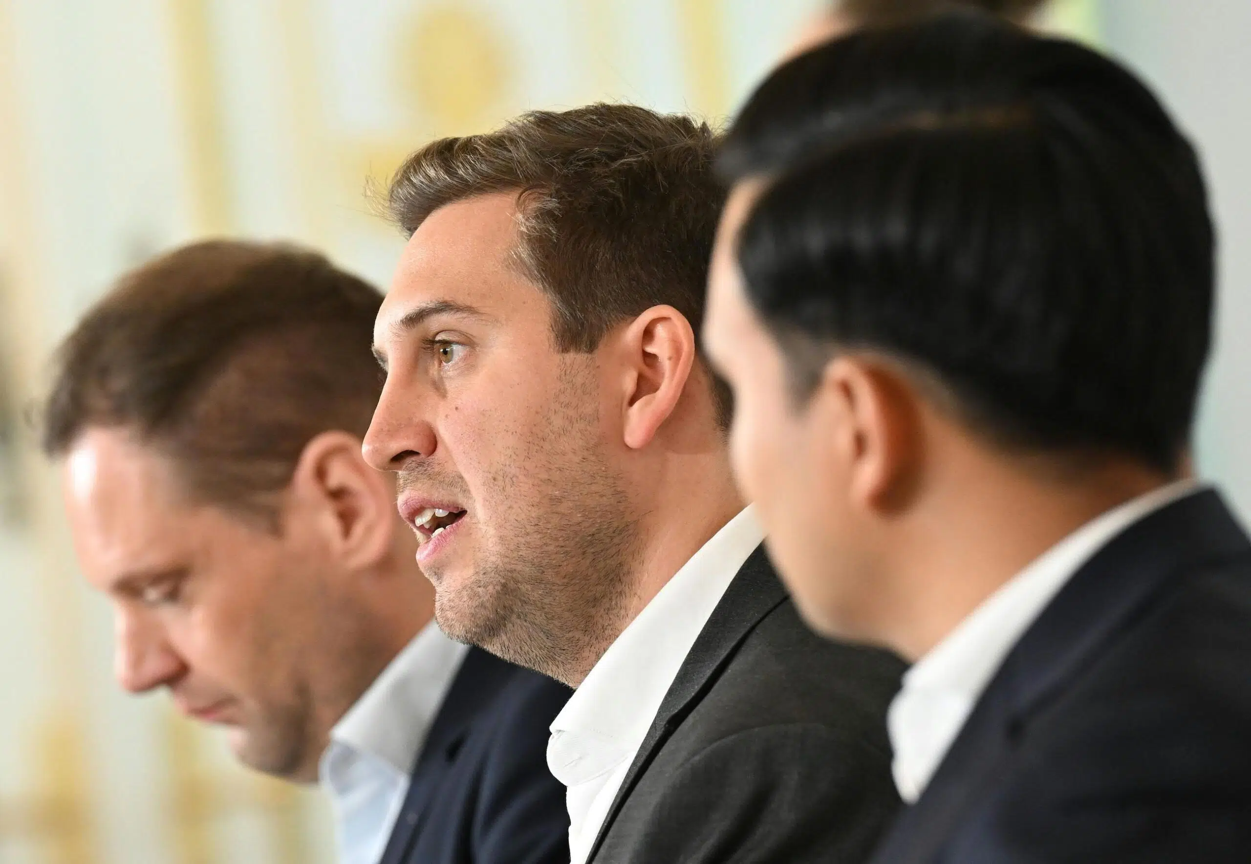 Staatssekretär Alexander Pröll (ÖVP) und NEOS-Klubobmann Yannick Shetty am Mittwoch, 12. November 2025, anl. einer Sitzung des Ministerrats im Bundeskanzleramt in Wien.