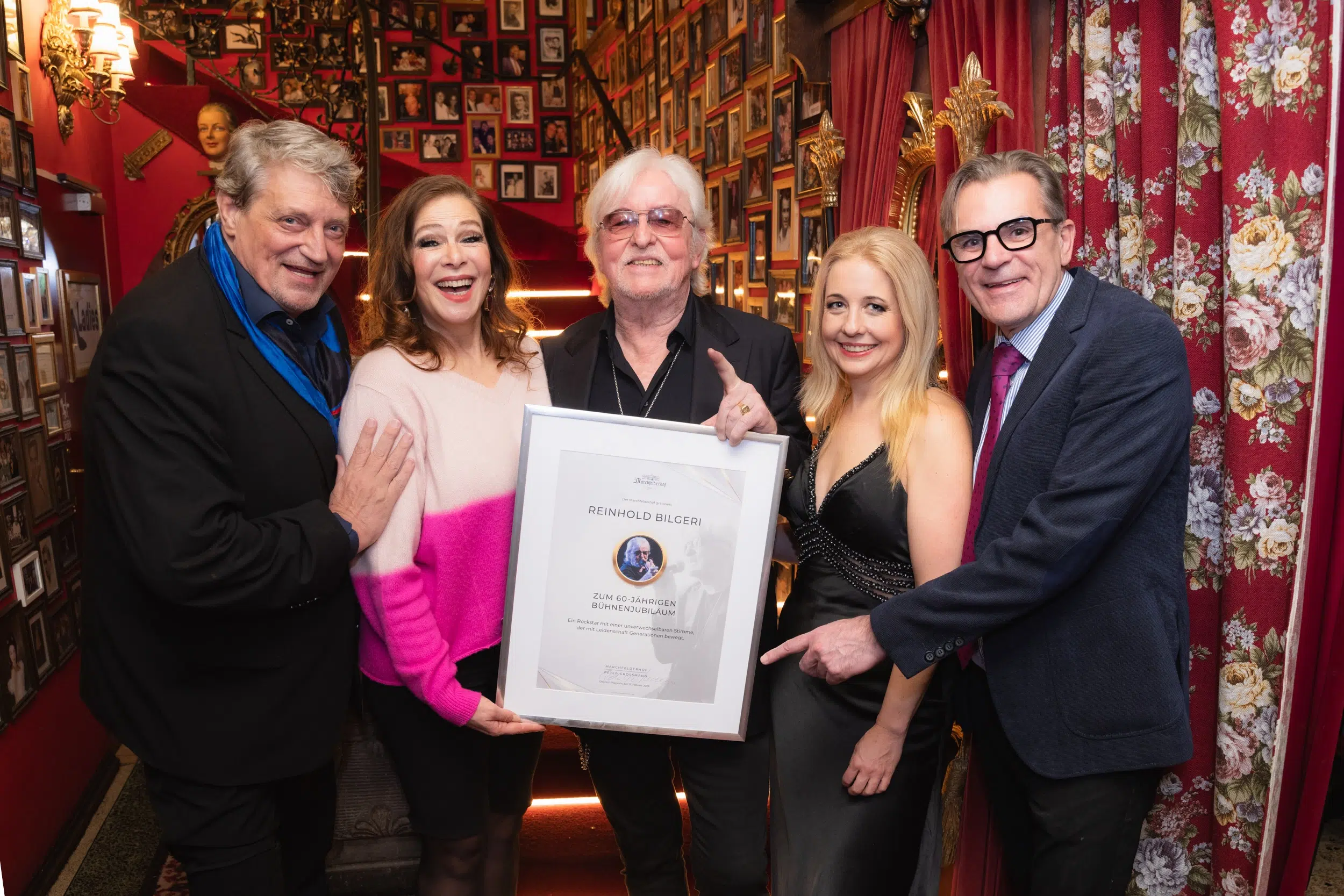 Für die Moderation des Abends sorgte Dieter Chmelar, der pointiert und humorvoll durch das Programm führte. Dabei gratulierte er dem österreichischen Musiker, Autor und Filmemacher Reinhold Bilgeri zu dessen 60-jährigem Bühnenjubiläum. Gemeinsam mit Kollege Gary Lux wurden Anekdoten aus mehreren Jahrzehnten Bühnenerfahrung ausgetauscht. Bilgeri selbst bedankte sich musikalisch mit bekannten Titeln wie „Desperado“, „Video Life“ und „Forever in Love“. Zu den Zuhörenden zählten unter anderem die Musicalsänger Gernot Kranner und Stella Kranner sowie Tony Wegas. Ein spontanes Duett mit Sopranistin Iva Schell verwandelte den Gobelin-Saal schließlich in eine Konzertbühne, auf der internationale Klassiker bis spät in die Nacht erklangen.