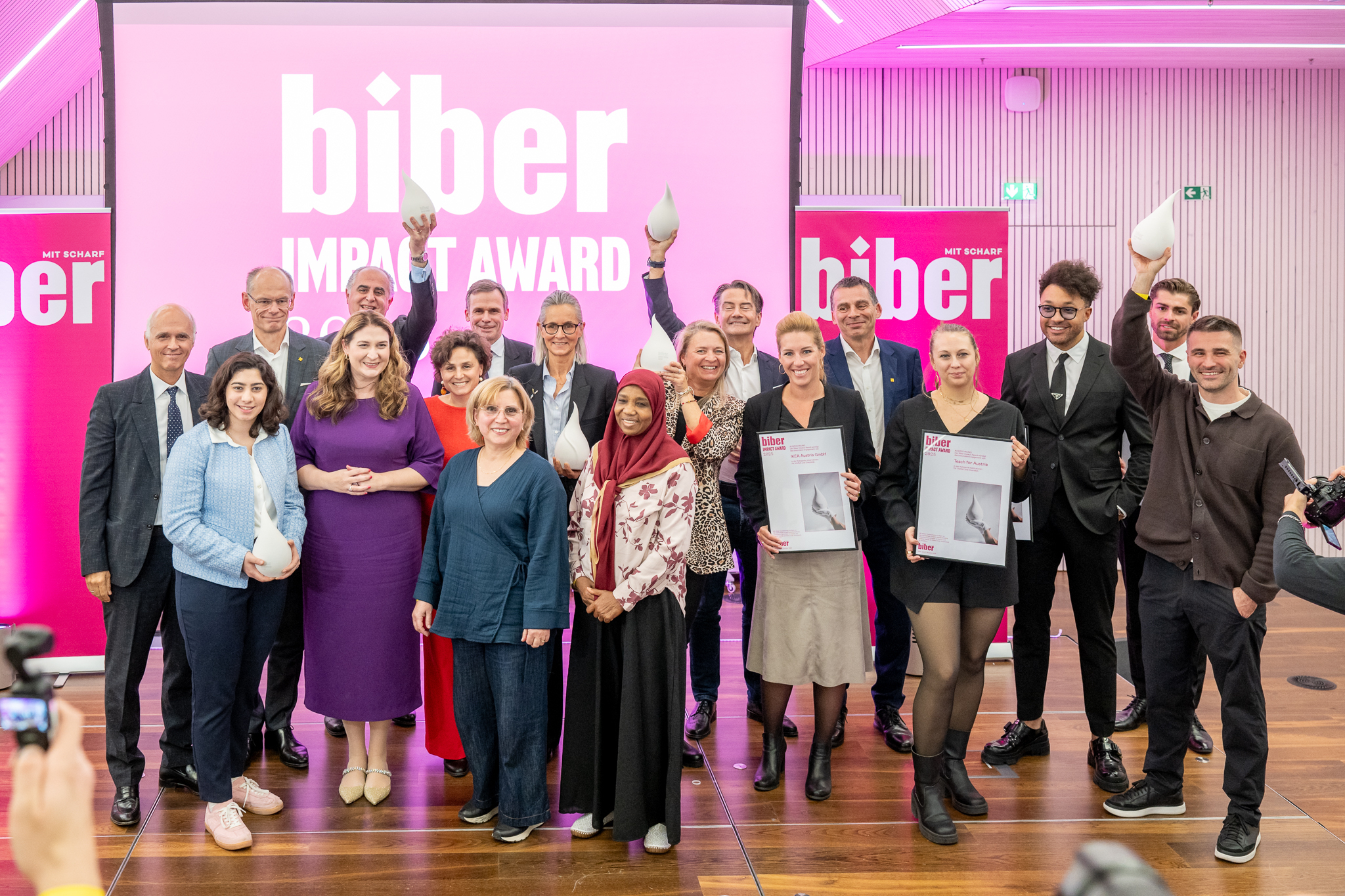 Im festlich erleuchteten Trompetensaal der Österreichischen Post AG in Wien wurden am Dienstagabend, dem 21. Oktober 2025, die Biber Impact Awards vergeben. Der Preis ehrt Menschen und Organisationen, die gesellschaftliche Verantwortung sichtbar machen. Rund 120 Gäste aus Wirtschaft, Politik und Bildung folgten der Einladung von Biber-Herausgeber Rudi Kobza und Chefredakteurin Simone Sattler, darunter ORF-Generaldirektor Roland Weißmann, Stadträtin Barbara Novak, Magenta-CEO Thomas Kicker, Unternehmer Niko Pelinka sowie Walter Oblin und Peter Umundum von der Österreichischen Post.