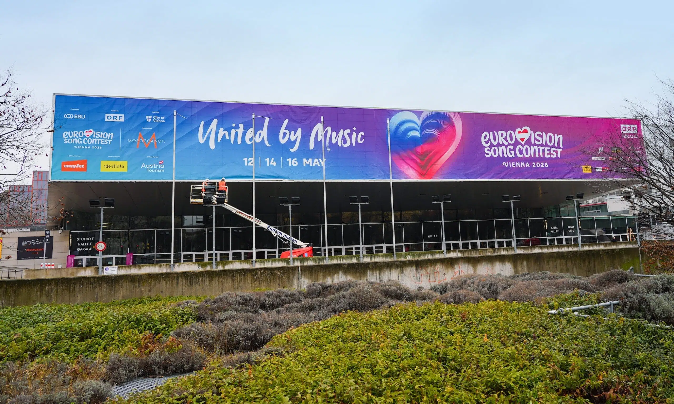Die Wiener Stadthalle zeigt sich ab sofort im Design des Eurovision Song Contest und bereitet sich damit auf den kommenden Musikevent vor.